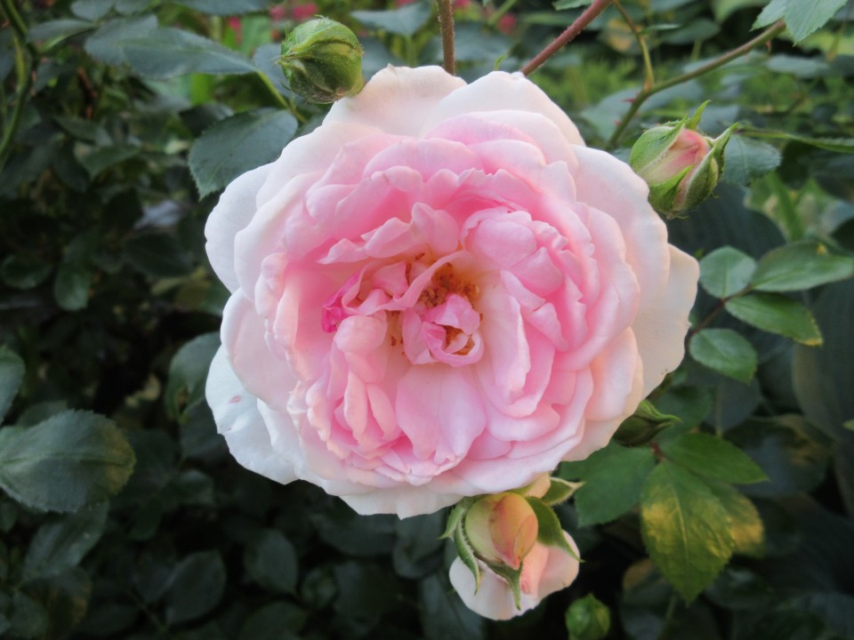Морден Блаш (Morden Blush) — это изысканная канадская роза, которая станет настоящим украшением вашего сада. Этот сорт отличается нежными, кремово-розовыми цветками, которые постепенно выгорают до почти белого оттенка, создавая потрясающий градиент. Цветки махровые, диаметром до 5-6 см, собраны в соцветия по 3-5 штук, что придает кусту особую декоративность.