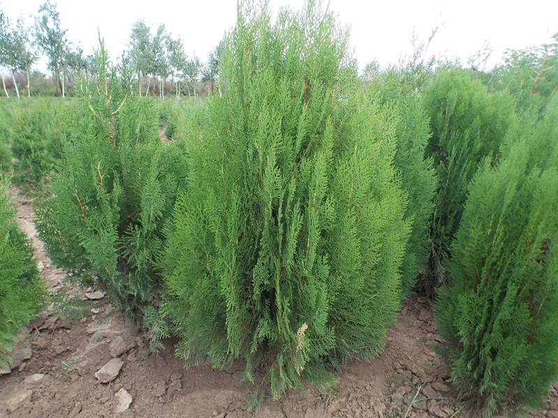 Туя Восточная – это вечнозелёное дерево, которое идеально подходит для создания живых изгородей, солитерных посадок или как элемент ландшафтного дизайна. Высота предлагаемых саженцев начинается от 150 см, что позволяет моментально получить зрелый вид вашего сада.